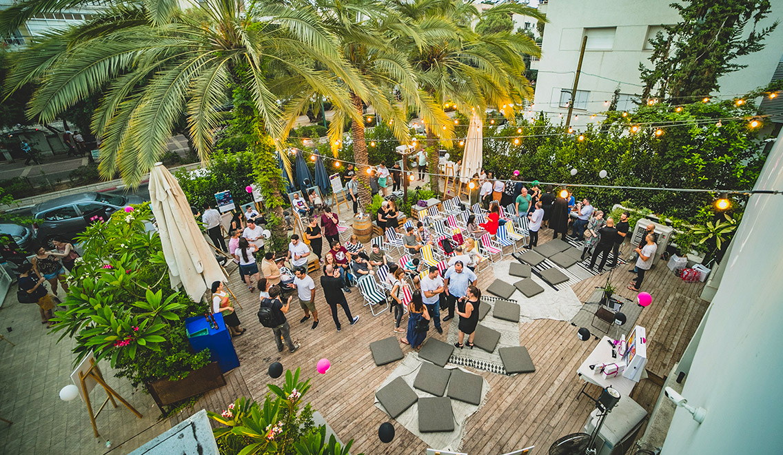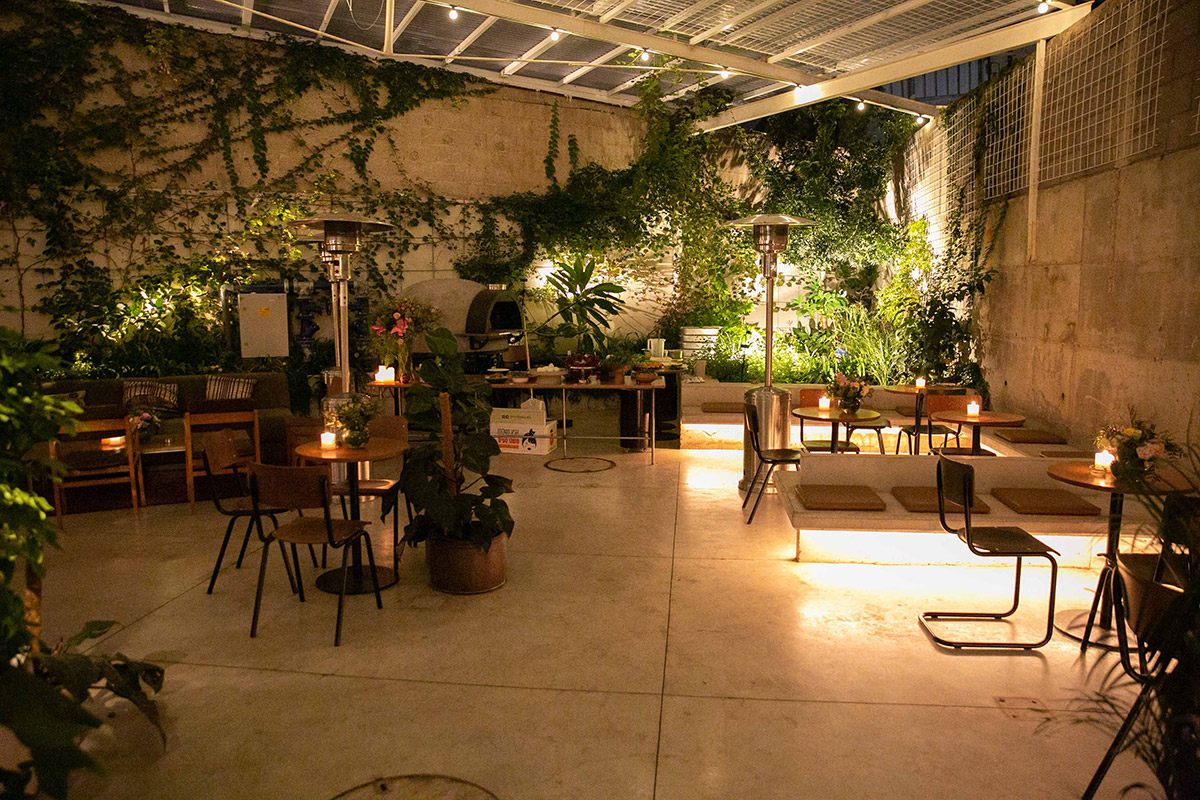 חצר הבית, שקטה ואינטימית המיועדת לאירועים כמו השקות, מסיבות פרטיות, אירועי תוכן ועוד.