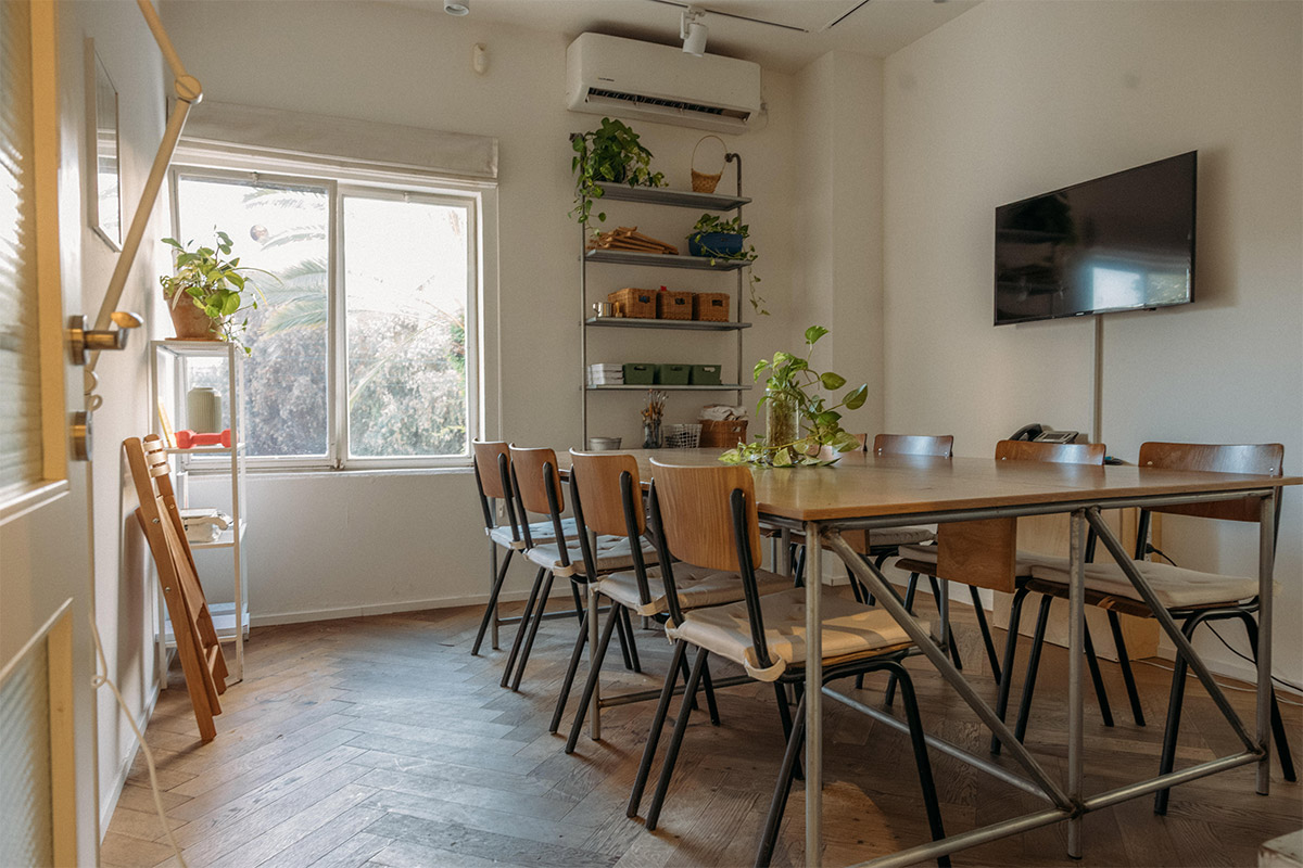 מתאים לפגישות קטנות וגדולות, ישיבות צוות והנהלה. כולל מרפסת ירוקה ושקטה להפסקה נעימה. אפשר גם להשכיר אותו לפגישות ואירועים שונים. אווירה נוחה ופשוטה שמאפשרת עבודה ומפגשים בצורה נינוחה ויעילה.